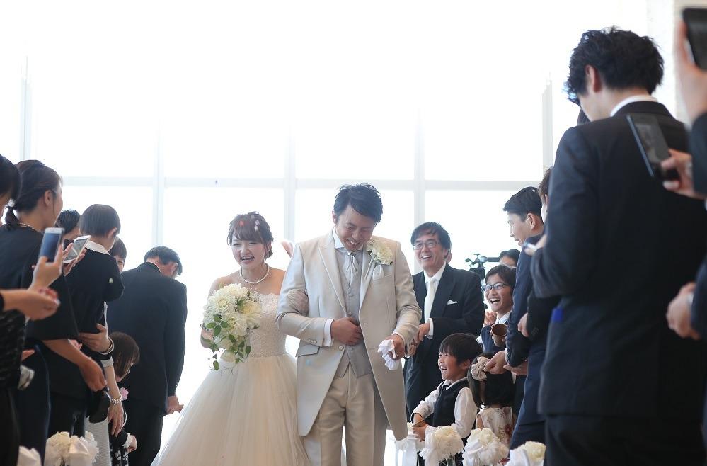 指輪を飾ったリングピローは・・・ 新婦様のお手作り! ワイヤーをひとつひとつアレンジしてくださいました! 挙式ご退場♪ アットホームな挙式で皆様が笑顔に包まれました!