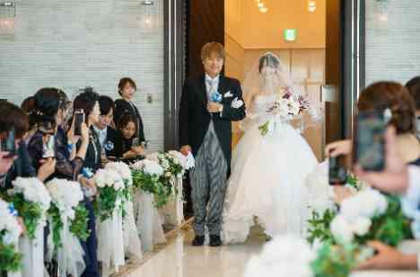 新郎様がご入場し、いよいよ新婦様のご入場。そして、お母様よりベールダウンのセレモニーを行っていただきました。ゲストの方々もお2人の晴れ姿と親御様の嬉しいそうな表情を見て、思わず一緒に笑顔に。 心温まる、和やかなご結婚式となりました。これから一緒に人生を歩むことを応援してくださり支えてくれた大切な皆様へおふたりの新たなスタートを見届けていただき、そして感謝を伝える素敵な時間となりました。