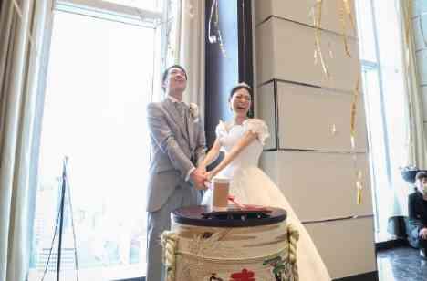 パーティーの中でもお二人一番のこだわり! 披露宴のシーンでは定番のケーキ入刀のシーンは取り入れず、こも樽をご用意。 お二人がこも樽を割った瞬間お酒が出てくるのではなく銀テープが! 実は、ドンパという演出となっており3mもの高さまで飛び出るようになっております! この演出にはゲストの皆様も思わずびっくり! 歓声と笑顔に包まれるアットホームな空間となりました。