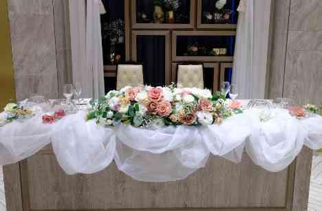 にこにこ笑顔でいつも物腰柔らかい新郎様と新婦様。会場内の装飾もそんなおふたりにぴったりなチュールを使った可愛らしい雰囲気に…♪お洒落なくすみピンクとグリーンがアンティークな要素を感じさせ、ゲストの方々からも「可愛い」とお声が♡お色直しで着用されたブラウンのタキシードと、ラベンダー色のカラードレスにもとてもお似合いでした♪
