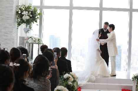 シンプルで上質かつ、開放感があり自然光がたくさん入るクリスタルスカイチャペルにて挙式がスタートです。これからもっと幸せになります…お互いを支えあいます…皆のあたたかいまなざしに見守られながら素敵な夫婦になりました…