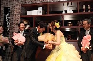 お2人共通の皆様からの余興DVDや、新郎ご友人の仲間内では恒例の余興など取り入れて、皆様の笑顔いっぱいでお2人のお人柄が溢れたパーティーを演出!そして結びには、ひそかに計画していた新郎様から新婦様へサプライズ!!これからも宜しくお願いします。と涙を流しながらお気持ちをお伝えする新郎様に、会場内は感動に包まれました♪