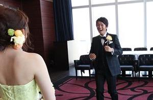 新郎様へのサプライズとして、カラードレスはずっと新郎様には内緒にしてきた新婦様。ついにドレスを初お披露目!どきどきだった新郎様のお顔が一転!「かわいい!最高!!」と、新郎様の本当に嬉しそうな笑顔が印象的でした♪