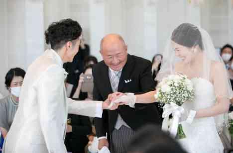 入場シーンから皆様からたくさんお祝いのお言葉で笑顔がたえないワイワイした雰囲気♪ 緊張気味のお二人も楽しく皆様に見守られながら笑顔で暖かい日差しがあふれる天空のクリスタルスカイチャペルにて結ばれました….