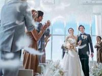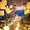 天の川をイメージしたシャンデリアの下、大切なゲストたちに囲まれてフラワーシャワーを♪温かくアットホームなセレモニーは、景色とともに忘れられないひとときになることでしょう。地上150mにあるチャペルは、ナイトウエディングにもオススメ!