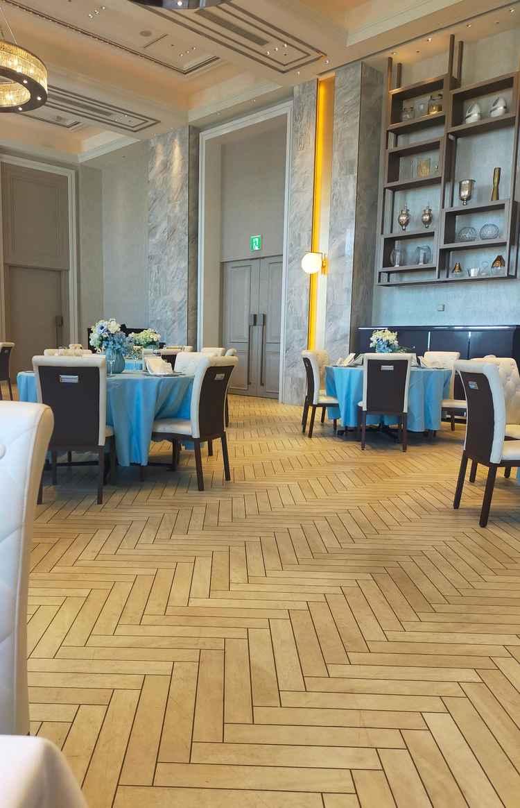 スッキリとした雰囲気で良かった 挙式会場はシンプルだけど自然光が入って温かい雰囲気があった 披露宴会場も絨毯がグレーなので派手すぎず良い