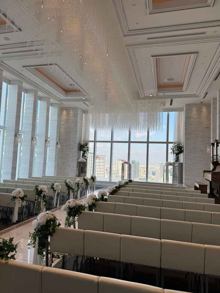 挙式会場では一つ一つにこだわりを持って作られておりいいなと思いました。もし雨でもきれいで写真映えもいいと思いました。