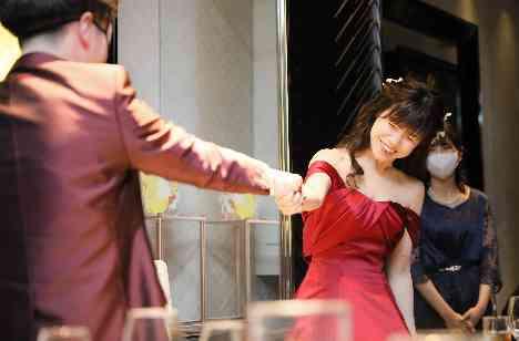 すごく仲の良いお二人で、新婦様もとってもキュートなのでどんなカラードレスにされるのかなと! ワクワクしていたら、新郎様とお揃いのワインレッドで決定されていました♡ お写真からでも分かるようにお二人ともとってもお似合いでした♡新郎様の謝辞後には、真っ赤な赤バラでサプライズ。本当に感動したシーンです!