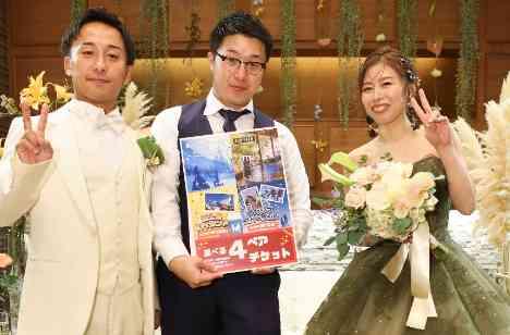 お色直し後、ご新婦様のお衣装を楽しみにされたゲスト様のもとへ くすみグリーンの大人なお衣装にチェンジされたご新婦様がご入場♡ 会場内はこの日いちばんの大盛り上がり✨ グリーンに投票されていたゲスト様の中から抽選をし 見事!当選された方が手にしたのは テーマパークや温泉など4つから選べるギフトカード✨ この景品に思わず会場のゲスト様からは いいな~と羨ましいコールが・・・!