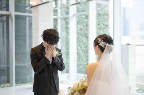 この日までドレス姿を秘密にしていた新婦様。どんな反応をするのか楽しみにしておられました♡そしていよいよお披露目へ。先にスタンバイしている新郎様の後ろから新婦様がそっと近づき、肩を優しくとんとんと叩くと、ゆっくりと振り返った新郎様から優しい笑みが♡そしてとても可愛い姿に感動の涙を流されていました。幸せいっぱいの瞬間からおふたりの結婚式がスタートします♪