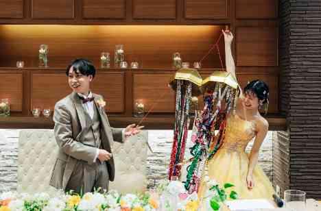 大盛り上がりの格付けゲームには実はサプライズが…! 当初打ち合わせで予定していたクイズではなく、新婦様が用意していたのはお腹の中の赤ちゃんの性別を当てるクイズでした。新郎様も知らなかったサプライズに会場もまた一段と歓声が上がります。そして正解発表はくす玉で♪結婚式という特別な日に、大事なお知らせを皆様と共有し、またひとつ大切な思い出ができたのではないでしょうか…♡