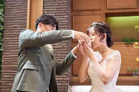 披露宴では日本酒の入った大きな樽の蓋を木槌で叩いて開ける伝統的な演出「鏡開き」をおこないました。円満・和・繋がりを象徴する酒樽の丸い蓋を開けるこの儀式は、未来の発展・運を開くという意味に繋がると言われ、結婚という新たな門出においてぴったりな演出です。 また儀式が結んだ後は、普段日本酒を飲む機会がないという方々も「せっかくなので…」と縁起のいい樽酒を嗜む姿も見られました。