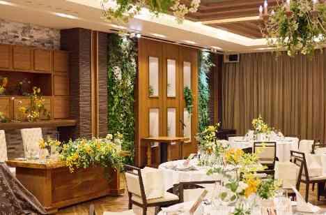 会場内を彩る白や黄色、オレンジといった夏らしさを感じさせる明るい花やいっぱいのグリーンが、当館のモダンスイート・レジデンスの内装にぴったり合い、ナチュラルで可愛らしい印象の空間に♡また、お色直しで新郎様が着用されたカーキブラウンのシャツと、新婦様がお召しになったグリーンのチュールドレスも装花との一体感を高め、センスが光るトータルコーディネートでした♡