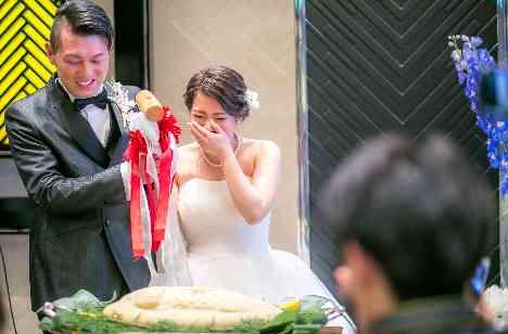 ケーキ入刀ではなく「鯛の塩釜」!!ゲスト様は初めて見る塩釜割に興味津々。普段はお席から見守っていることが多いご親族様も総出でメインに集まってくださいました。お酒をたくさん飲まれたゲスト様も「最後にお茶漬けはすごくいい」というお声をたくさん頂くことが出来ました。