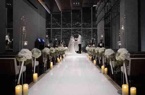 某映画の世界観がお好きなお二人 ザ・アクアチャペルのナイトウェディングの雰囲気を気に入ってくださった キャンドルウェディングを行いました。チャペルでのお時間をたっぷりとって親御様への感謝のお気持ちを伝えるようにしました
