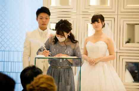 "初回打合せより新婦様がブライズメイドをお願いしたいと希望。 仲良し5人組の4名にそれぞれの役割をお願いし挙式にてお手伝いをしていただきました。 ☆立会人代表署名☆ 5人組でも一番仲の良いブライズメイド1名に祭壇にお越しいただき結婚証明書に署名をいただきました。"