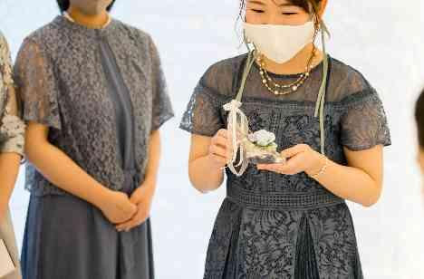 ☆リングベアラー☆ ゲストにお子様がいらっしゃらないためブライズメイド1名に指輪を運んでいただきました。 ☆誓いの言葉☆ ブライズメイド2名より誓いの言葉を問いかけていただき新郎新婦様が「はい」とお返事
