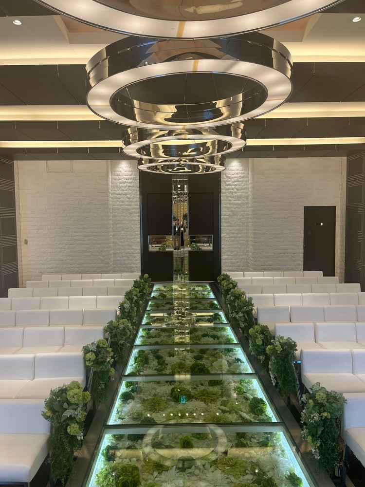 披露宴会場が少人数でも寂しくならない大きさで、緑も沢山使われていました。フォトスポットもあり、ゲストの方々と思い出を残せると感じました。