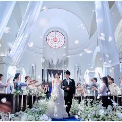 【ロイヤルブルーの大聖堂で挙式体験】花嫁の憧れを叶えるチャペルへおふたりで入場体験!本格的なチャペルは、11mのバージンロードや13mの天井高をご用意!大阪唯一のチャペル映像体験をご用意♪