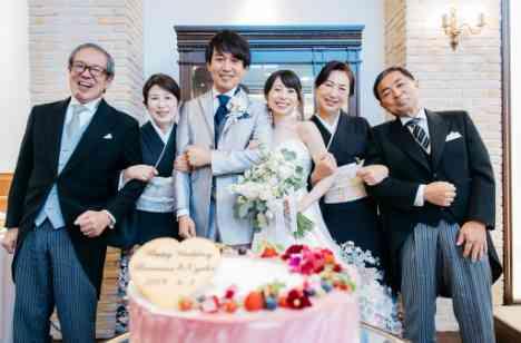 まだまだ新米夫婦のお2人。ウェディングケーキご入刀後、ファーストバイトをする前にお呼び出しをされたのは、ご両家ご両親様。人生の先輩、夫婦の先輩としてお手本バイトをご披露いただきました。お互い照れながらも、しっかりお手本のおつとめを果たしていただき、ご家族の絆を感じることができました。お2人も素敵なご両親様に囲まれて、最高の笑顔でお写真を撮影していただきました。