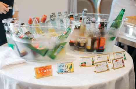お2人がウェルカムパーティーでご準備されたのは、ボトルドリンクです。バドワイザーやハイネケンなど様々な種類のボトルドリンクをご用意されました。もちろん、カクテルやソフトドリンクなどノンアルコールのお飲み物もご用意され、ゲストの方に楽しんでいただくお時間となりました。お2人の入場を待つお時間も、まるで海外パーティのようなカジュアルな雰囲気でゲストへのおもてなしにぴったりです。