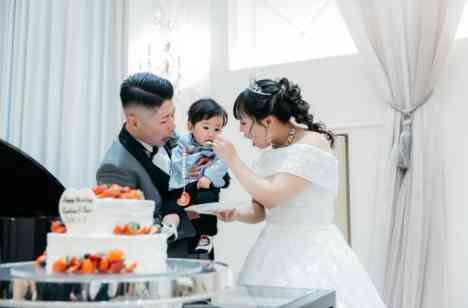 おふたりのオリジナルデザインのケーキを使ったシーンで登場したのはおふたりのお子様! 大切なお子様にとってもおふたりにとってにも素敵な思い出になったことでしょう♪ ケーキ入刀やファーストバイトなど、ご家族様でほほえましいお時間となりました。 ご参考にもなる、とっても素敵なアイデアですね! 是非取り入れてみてください。