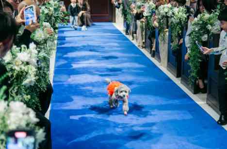 おふたりのたいせつな家族の一員、トイプードルのぱるむちゃん。特別なお衣裳を着て、お仕度が整ったのち、いざ本番へ!挙式リハーサルでは緊張していましたが、本番では大成功♪おふたりのお姿目掛けて、しっかりとリングを届けてくれました。かわいらしいぱるむちゃんの登場に、チャペル内にいらっしゃるゲストも大喜びなお時間に☆