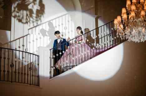 披露宴は、真っ白いお城のような雰囲気の『シェルダジュール』にて行われました。階段から降りる演出では「プリンセスのような気分を味わえました!」と笑顔でお話されていたのが印象的です。会場装花にもこだわり、何度も担当スタッフとの打ち合わせを重ね、前日もご新婦自らお花の配置を調整されていました。当日は、胡蝶蘭やかすみ草を使用した白で統一されたコーディネートでゲスト皆様の目を楽しませていました。