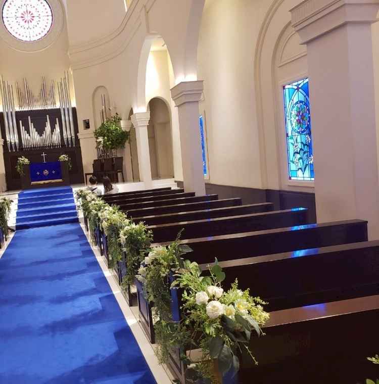 青いヴァージンロードが綺麗 | アニヴェルセル 江坂(新大阪)