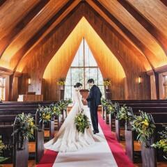 【牧師が贈る心繋がる挙式】10mの天井高に伸びる美しい木目が印象的なチャペル。最大100名着席可能。本物の教会ならではの生花と木の香り漂う中、挙式本来の意味を大切にゲストとの繋がり感じる感動のひとときを