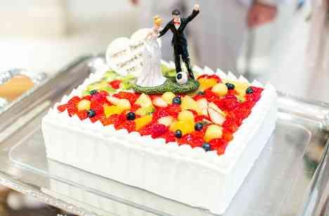 サッカーが大好きな新郎様。そんな新郎様に喜んでもらいたいとケーキ入刀時に新婦様よりサプライズでサッカーのケーキトッパーをご準備されました。新婦様の可愛らしいサプライズに新郎様も最高の笑顔を見せてくださいました。このあとのファーストバイトも大きなスプーンで行い、ゲストの皆様にもお楽しみいただけた素敵なお時間でした。