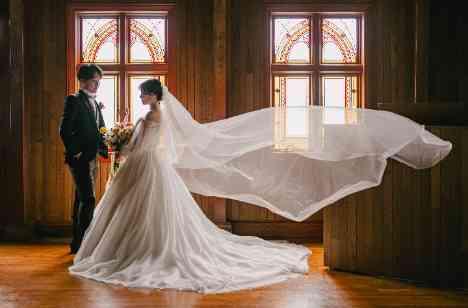 挙式が結ぶと、おふたりだけのスナップタイムをご用意しております。京都ノーザンチャーチ北山教会ならではの歴史を感じるアンティークなステンドグラスからの光は美しく、おふたりのシルエットがとてもよく映えます。まるで映画のワンシーンのようなお写真をたくさん残していただけることも魅力です。ウェディングベールなどの小物やドレスのバックスタイルを生かしたスナップも大変人気です!