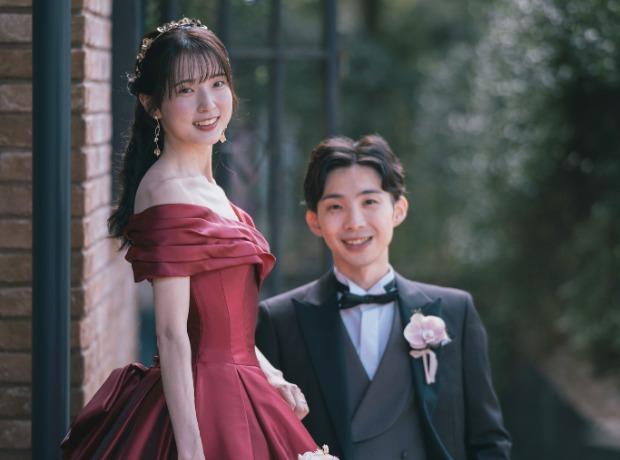 白を基調としたエレガントな雰囲気のパーティ会場【THE TRINITY HOuSE】。ウエディングドレスはもちろんのこと、カラードレスや鮮やかな色の和装までどんな衣裳でも映える人気の貸切邸宅です。新婦様のカラードレス当てクイズをおふたりは演出に取り入れられ、大変盛り上がりました♪深い赤のカラードレスが新婦様の雰囲気にもよくお似合いで、会場を華やかに彩っていました☆