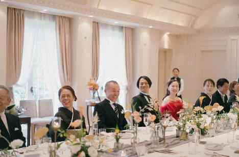 ケーキ入刀やファーストバイトの演出もお楽しみいただき、ゲストとも距離の近い、アットホームなパーティが叶いました。大切なご両親へ届けたい思いも言葉にされ、笑顔と感動に満ちあふれたとてもあたたかな空間に。おふたりが心を込めて丁寧にご準備され迎えたこの日は、大切な方々の記憶に残り続ける特別な一日になったことと思います*