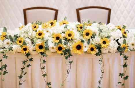 とても仲が良く笑いのたえないおふたり♪ ゲストの皆様にも楽しんでほしいとワクワクする空間作りを大切にされていらっしゃいました。会場のコーディネートにもこだわりのひまわりをいれ、可愛らしい統一感のある雰囲気となりました!