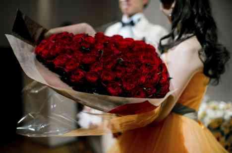 学校の先生をされているご新郎様に向けて生徒様から嬉しいサプライズムービーが届きました。思わず笑顔が溢れます。 また結婚式の結びには新郎様から新婦様へ“いつもありがとう”の想いを込めて、108本の薔薇をプレゼントされました。