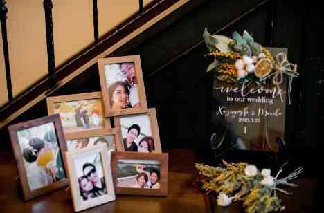 ご披露宴にはご新婦様のこだわりが沢山つまっております。披露宴会場の入り口では、おふたりの思い出が詰まったお写真やお洒落なウェルカムボードなど、おふたりがご用意された沢山のウェルカムグッズがゲストの皆様をお迎えいたします。 また会場内は、グリーンが溢れナチュラルで温かい空間となっており、おふたりとゲストの皆様も自然と笑みが溢れておりました。