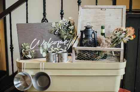 パーティー会場はおふたりのお好きなものをたっぷりとつめ込みました。 ご披露宴会場のウェルカムスペースではご新郎様のご趣味のキャンプグッズがお出迎え* 皆様、おふたりの世界に引き込まれます。⁺ 会場に一歩入ると、ご新婦様のこだわりがたっぷりと詰まった大人っぽくナチュラルな空間で、ゲストの皆様も素敵な空間に心躍ります☆