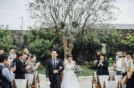 ガーデンでゲストの皆様に見守られながらの人前式でした。 ゲストの皆様がおふたりのご結婚の証人となる人前式* 自然の光や風、そしてオリーブの木が見守る緑溢れるガーデンでのご結婚式は、おふたりにとってもゲストの皆様にとっても心に残る、一緒に楽しめるお時間となりました。