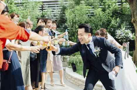 ゲストの皆様がお祝いのメッセージを書かれたドロップスボードにおふたりが署名される場面も☆ 挙式が結ぶとビールやラムネで乾杯!楽しい話し声で溢れます。* 皆様がひとつになる素敵なお時間となりました。
