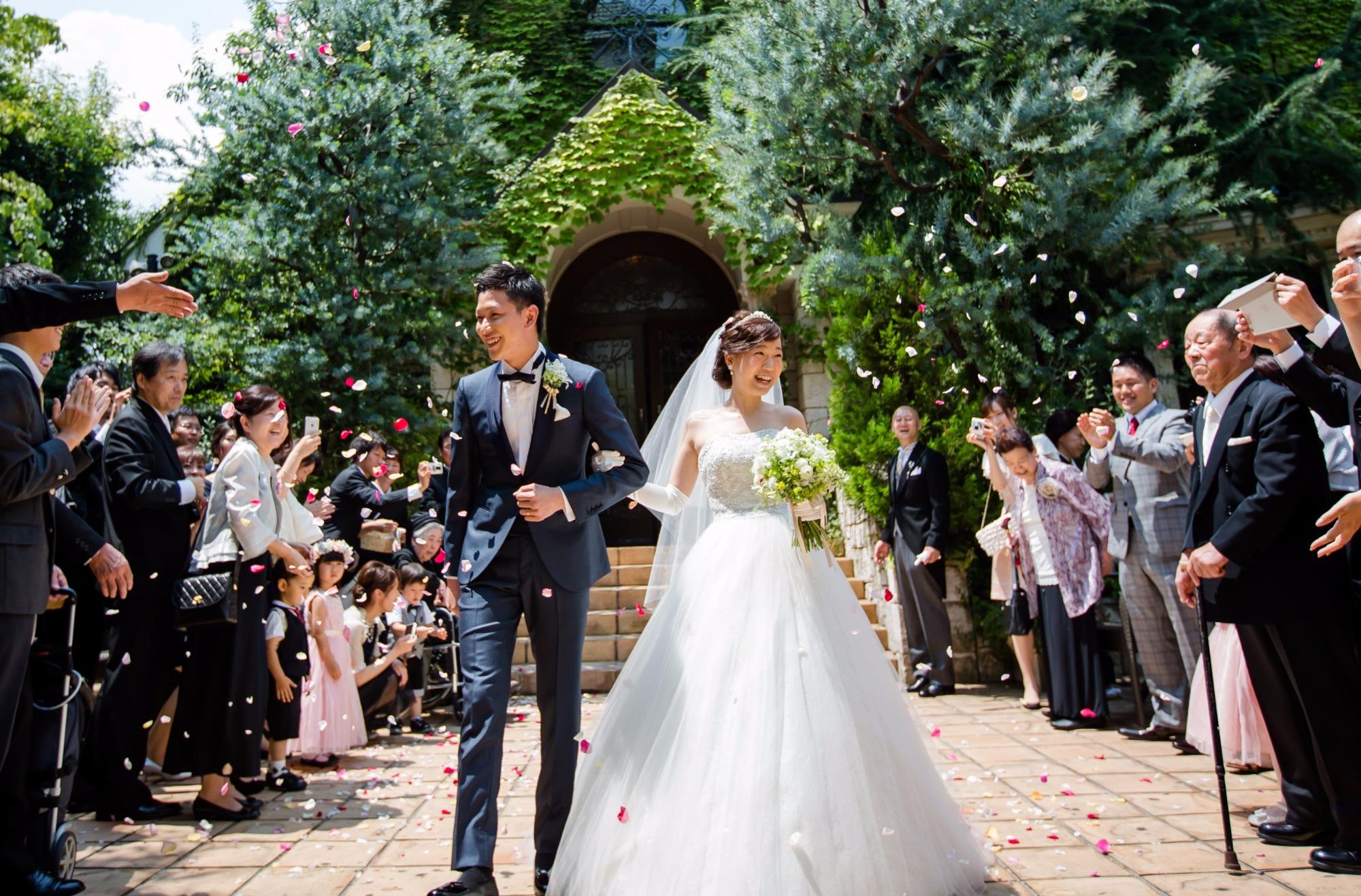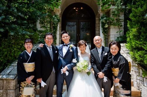 貸切の緑に包まれたガーデンにて、大切な家族・友人などのゲストとの楽しい歓談を過ごせました。 たくさんの写真が素敵な教会をバックに残せました☆