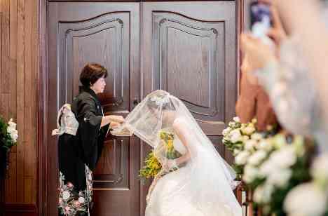 新婦様のベールには、ご家族様の”守り”や”愛情”といった素敵な意味合いが込められております。 大切なシーンだからこそ、当教会ではスタッフからではなくご家族様にベールダウンを行っていただいております。 ご入場の際、ゲストの皆様に見守られながら、お母様にベールダウンを行っていただけるとても感動的なシーンです。