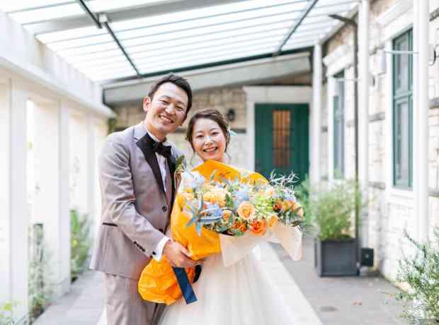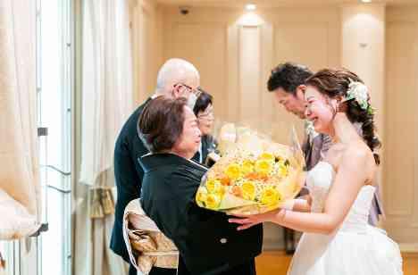 披露宴の結びには、おふたりから親御様へ贈呈のお花束をお渡しされました。今の自分がある1番大切な存在、照れくさくて普段なかなか言えない感謝の言葉を、おふたりが親御様のために考えられたお花束とともにお伝えされました。「立派に育ててくれてありがとう。」溢れ出る思いは、親御様との数え切れない思い出が思い出され、感動で包まれたお時間でした。