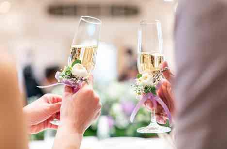 お花が好きな新婦様。専属のフローリストとともに、シンプルでナチュラルな雰囲気を大切にされていました。ブーケはもちろん、ヘアオーナメントで後ろ姿も華やかに、披露宴会場では会場装花、そして乾杯用のおふたりのグラスにもお花をお付けいただきました。ゲストの皆様から祝福をいただく大切なシーンにおいて、より一層華を添えました。