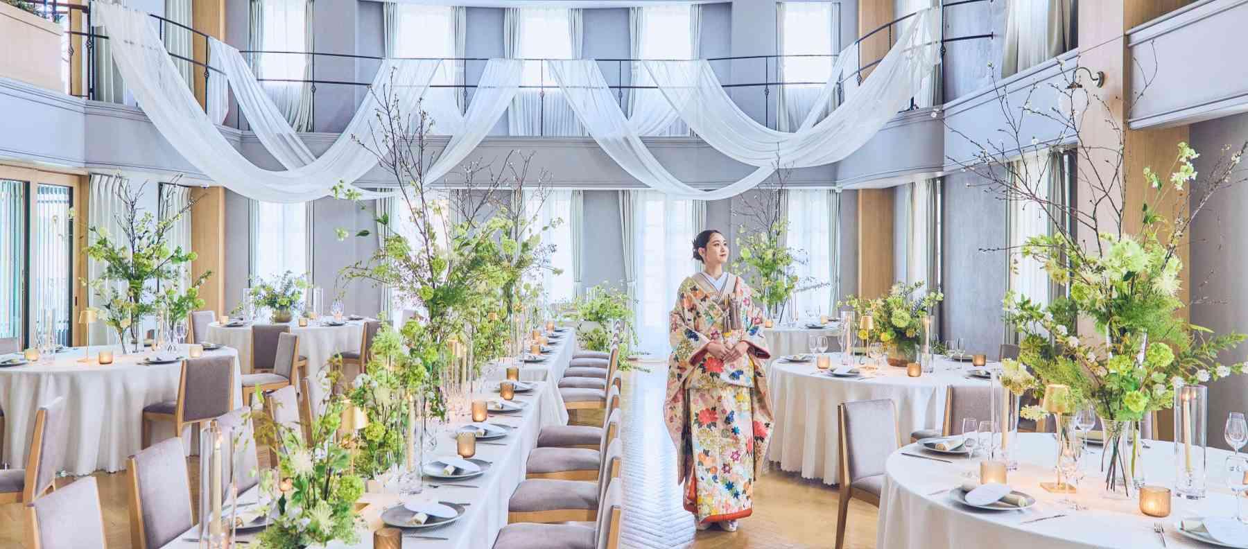 1856年創業の老舗料亭【下鴨茶寮本店】和×洋が融合した一棟貸切【レストラン VITRA】をはじめ、人数や雰囲気に合わせてセレクトが可能。遠方ゲストや親族にも、心から寛いでいただける上質な時間をご提供