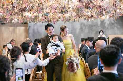 ご結婚式本番は挙式のリハーサルの際から「やっと今日は挙式やなぁ」と、感無量で涙をされていたおふたり。今まで沢山ご準備をしてこられたご結婚式でお二人の為に沢山の方々が集まってきてくださる日 本番はお二人のお子様やゲストにもお子様が…! お子様がいらっしゃるからこそのお子様演出を沢山行い、お二人らしい暖かな雰囲気の挙式を迎えられました。