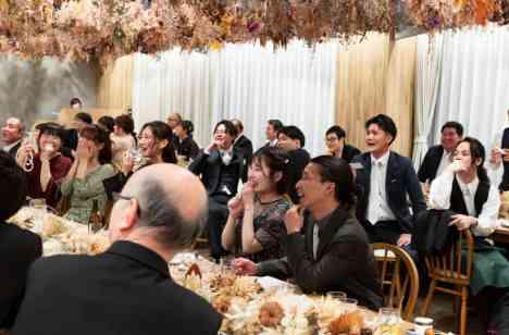 披露宴再入場後はゲストの皆様と一緒に競馬をしよう…!と席札として馬券を用意し、事前に18頭の馬の中からどの馬が1等か予想をして頂き、豪華景品をかけたゲームスタート!!! 皆様モニターに全集中で、大熱狂大盛り上がりの会場内!!白熱の試合の中、景品をお持ち帰り頂きました! お越し頂いたゲストの皆様からも楽しかったとのお声が続出でした!