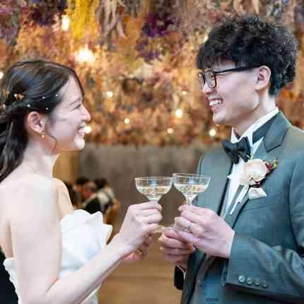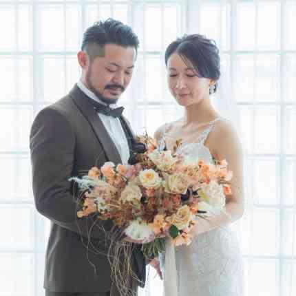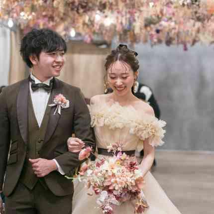 ドライフラワーをたくさん使った披露宴会場と空港近くにあるのが強みの式場