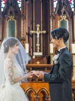 正面のステンドグラスが放つ極彩色の光に導かれ誓い合うふたり。そして全ての音が止んだ瞬間に訪れる静寂の深さを体感できます。