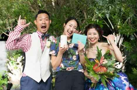 ゲストにレイをつけて頂いたり、スタッフの方にはアロハシャツを着て頂いて、ハワイグッズや流木で装飾を。挙式前のウェルカムドリンクも海外仕様にこだわりおもてなし!当日列席をしてくれたゲストの方々からも、「ハワイ挙式に来たみたい!」ととても好評な声を頂いて、南国気分を味わっていただけてとても嬉しかったです。